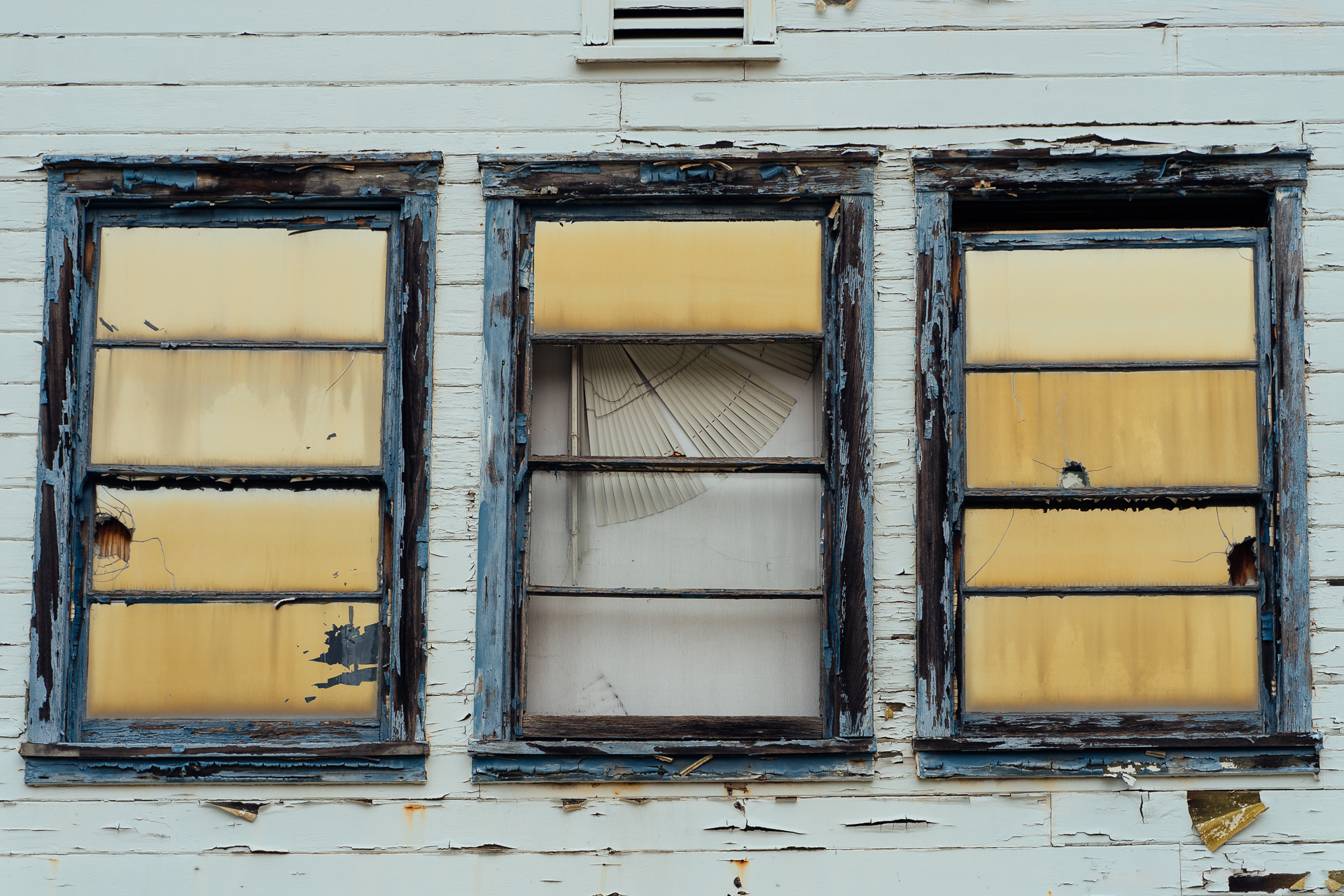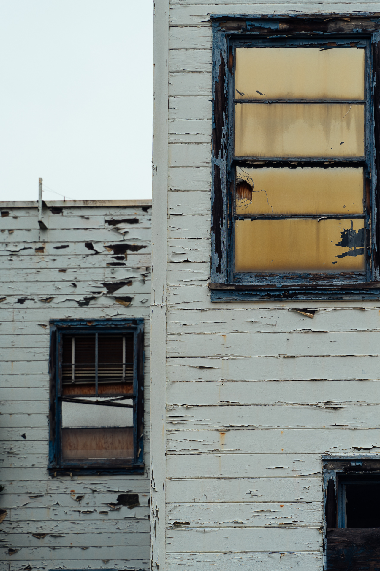 I decided to go shoot early in the morning to use the typical dull overcast we get in the Bay Area during summer days. The intention was to use the white sky to reinforce the mood that emanates from these abandoned buildings as they fade into ruins. I thought the light would work well with the washed out colors of the chipping paints.